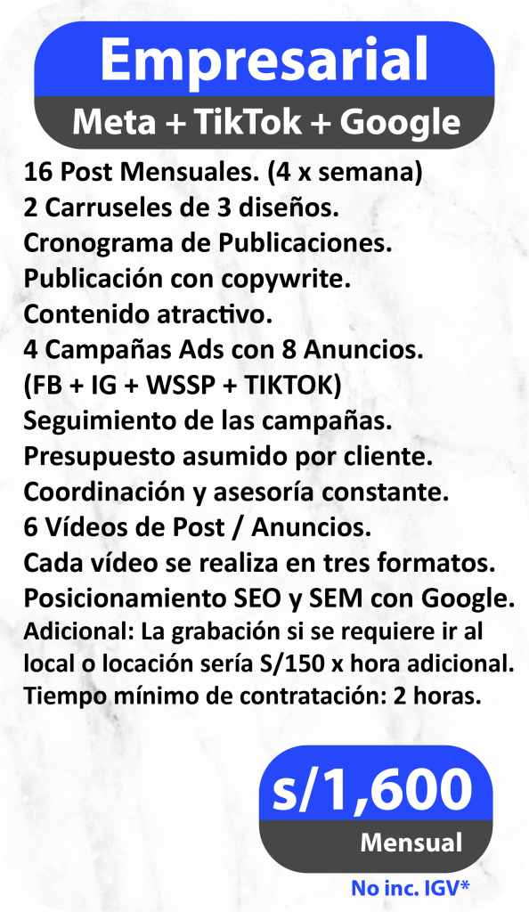 Ya teniendo desarrollado el BRAND de tu MARCA; pasamos a las Campañas, las cuales pueden diversificarse según estrategias y objetivos a alcanzar.